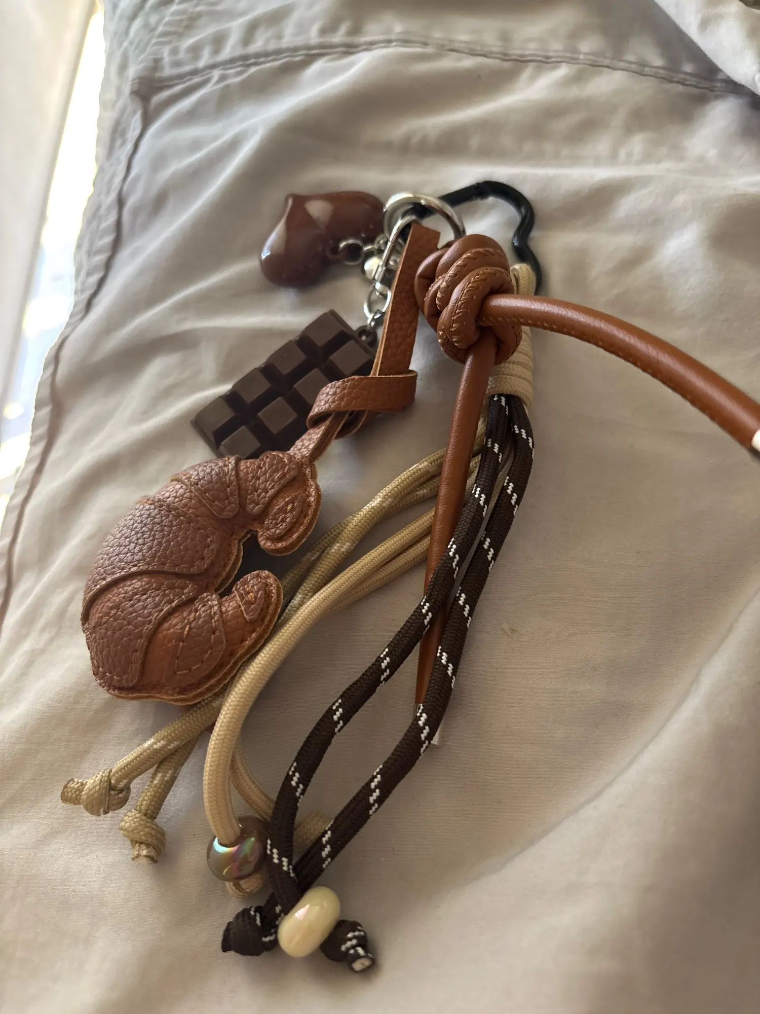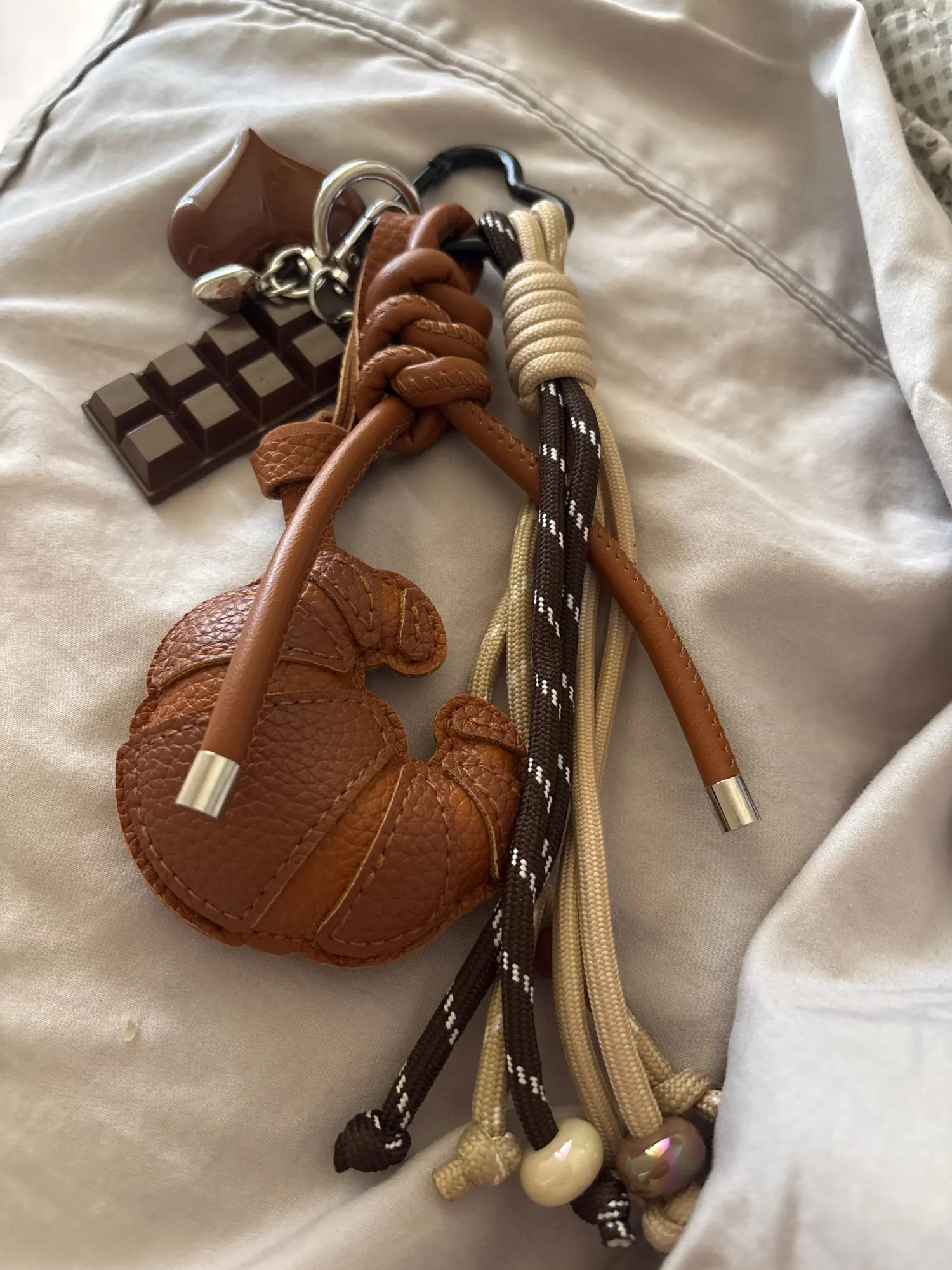 Our charms are crafted from a mix of high-quality materials that can vary depending on the design — from lightweight plastics and durable metals to soft vegan leather accents. Each piece is chosen to bring personality, texture, and a little spark of fun to your bag, while staying true to our commitment to thoughtful, wearable details.